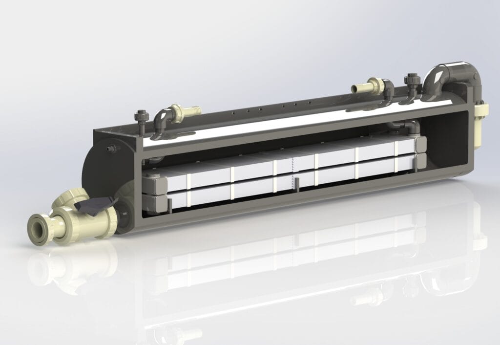 Je nach Systemdesign und thermischem Regelbedarf kann der Wärmetauscher entweder direkt im Elektrolyttank oder in der Zuleitung vor der elektrochemischen Zelle eingesetzt werden.